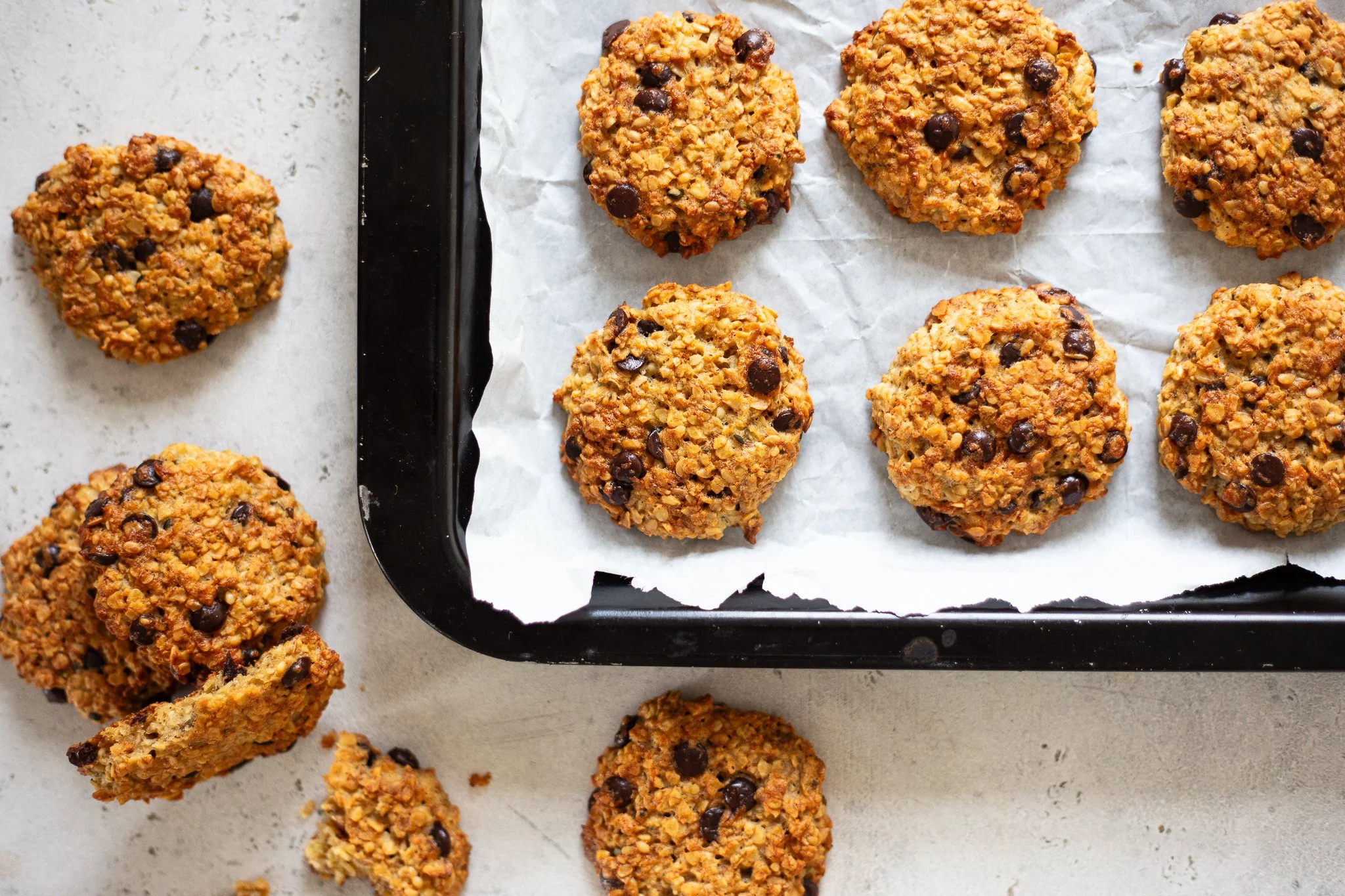 Diese Kekse sind super schnell gemacht, du brauchst dazu nichtmal einen Mixer. Mit Haferflocken, Saaten und Banane strotzen sie nur so vor Nährstoffen, machen satt und schmecken nebenbei auch noch super gut.