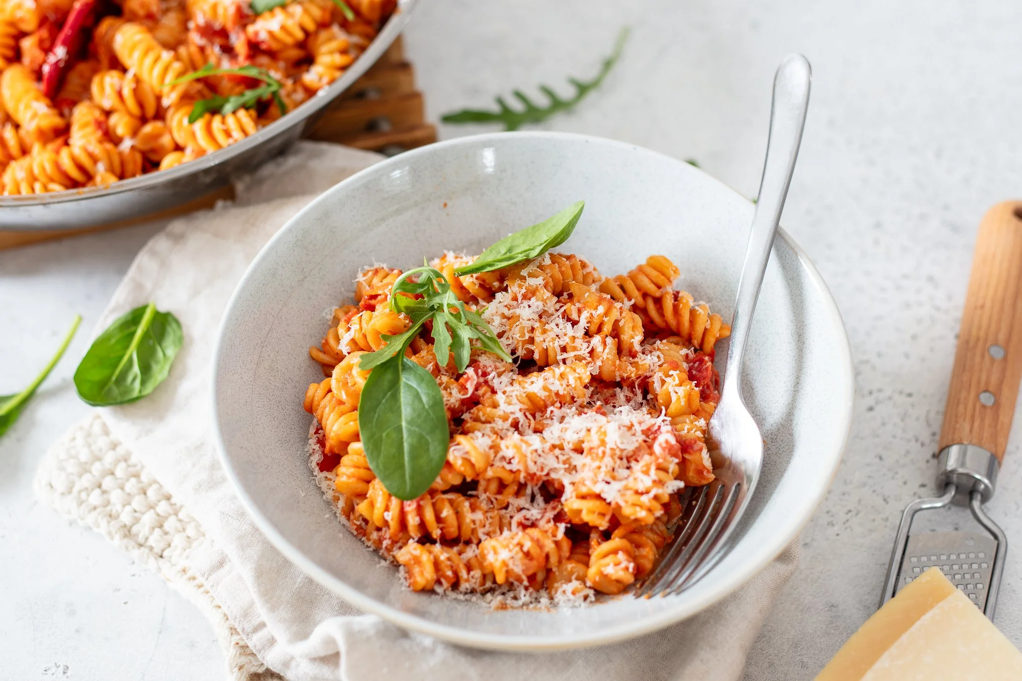 Aber ich kann sie verstehen, in 15 Minuten am Tisch, cremige Tomatensauce die sich um köstliche Pasta schmiegt, darüber frischen Parmesan und das Beste: du hast dafür bestimmt alle Zutaten zu Hause!