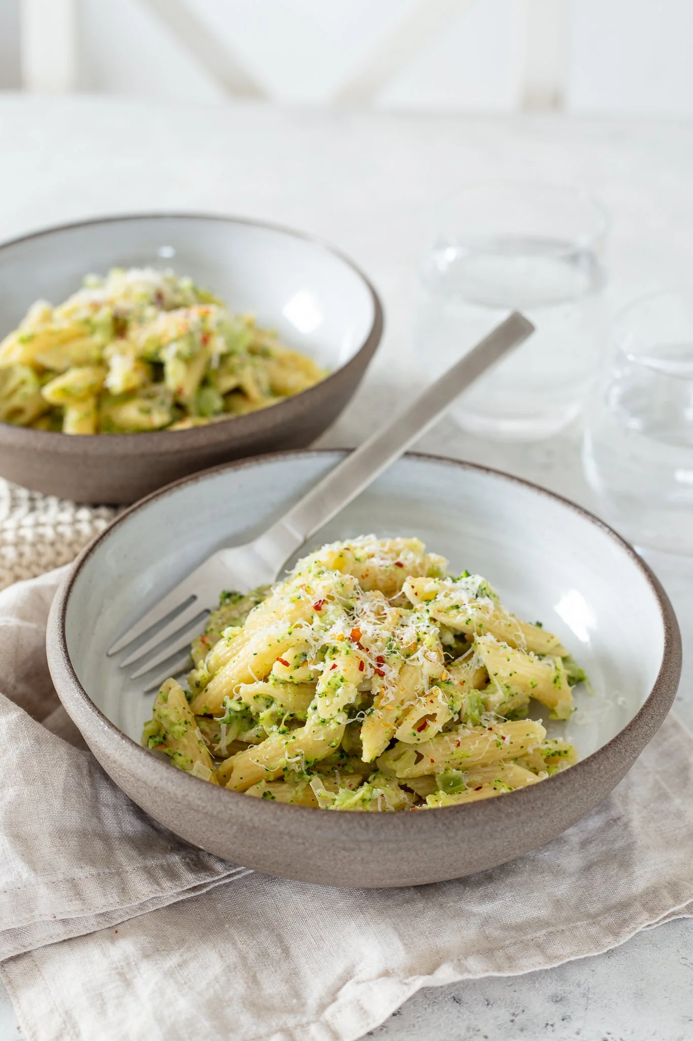 Wenn es schnell gehen muss kommt bei uns Pasta zum Einsatz. In allein Formen und eine unserer liebsten ist diese hier: mit zerdrücktem Brokkoli, etwas Chili und reichlich Parmesan. Die Kinder lassen hier nichts über!